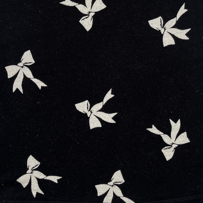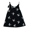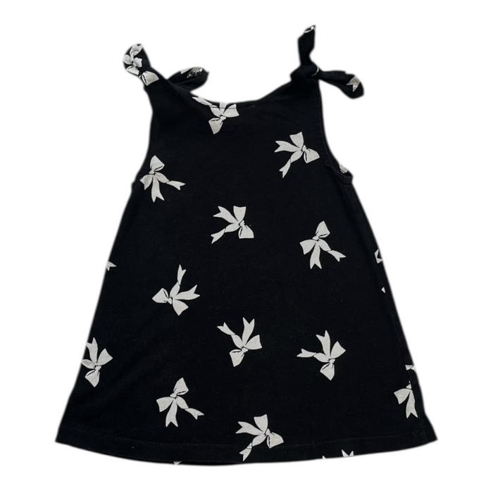 ✏️ Robe débardeur avec un imprimé noeud blanc sur fond noir. La hauteur des bretelles se règlent avec un noeud. Avec un t-shirt blanc à manches courtes ou longues en dessous, c'est craquant.